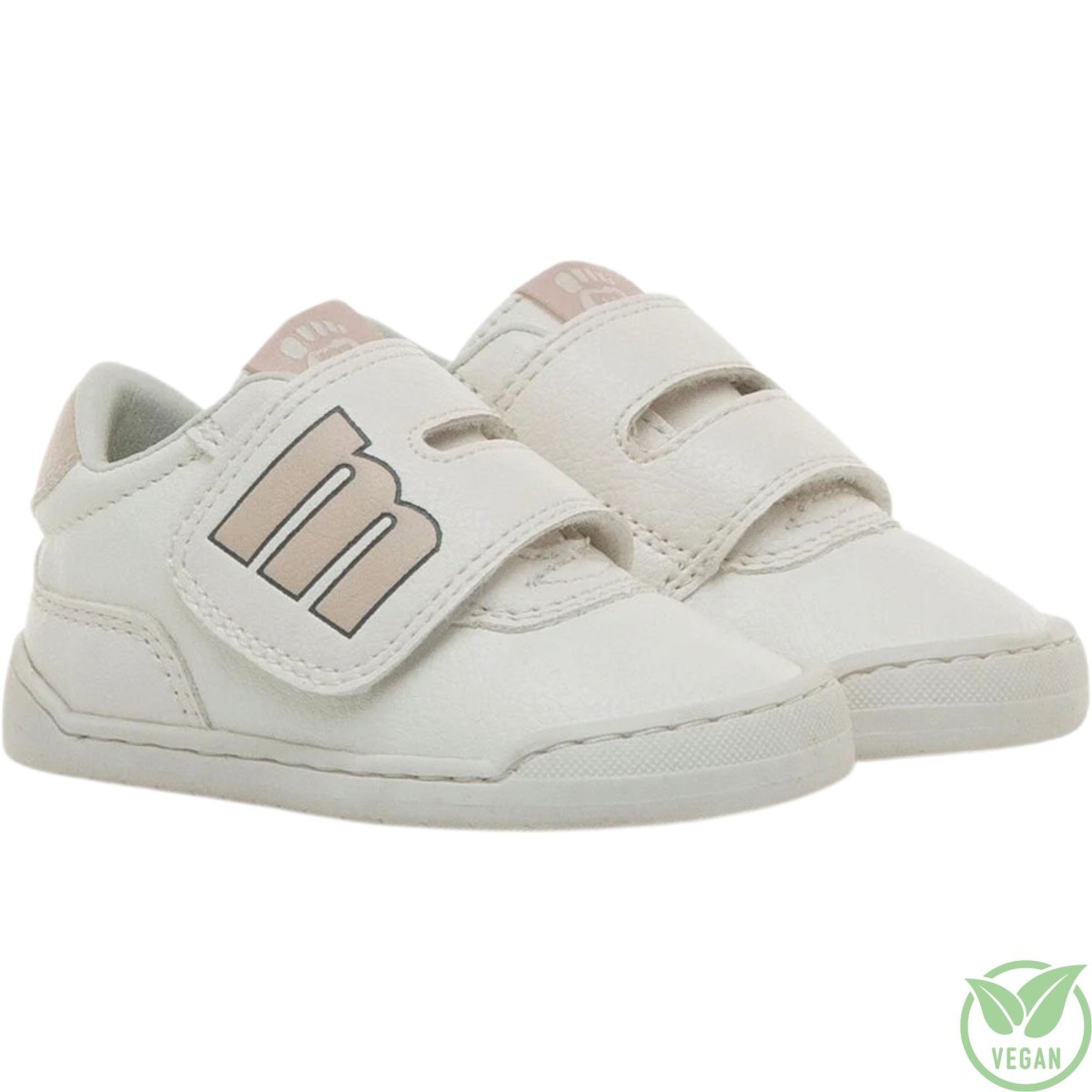 Zapatillas deportiva blanca básica con "M" lateral en color nude, modelo Free Baby de la marca Mustang. Con un diseño casual pensado para los primeros pasos y lavables. Suela de 3mm de grosor y 0 drop respeta el desarollo natural de pie de los más pequeños. Acomapaña los primeros pasos de tu bebbé con Mustang.
