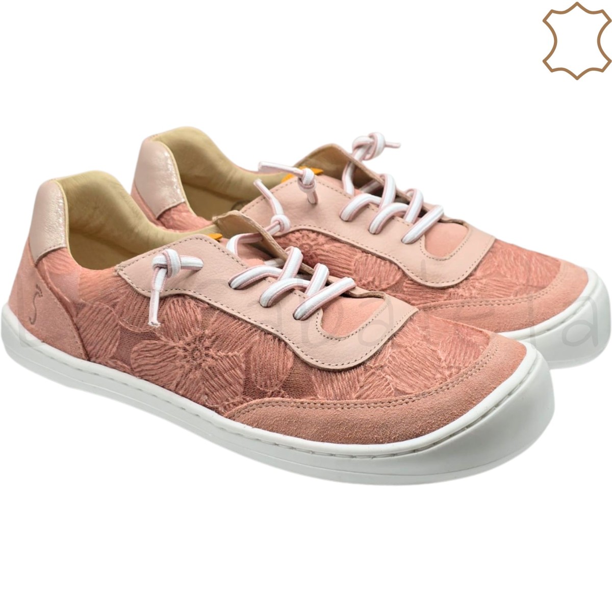 Sneaker Flexinens en tono rosa empolvado con diseño floral en rejilla exterior. Fabricada en piel combinada con rejilla y forro interior en piel que aporta suavidad y comodidad en cada paso. Un modelo ligero y versátil, ideal para dar un toque dulce y sofisticado a cualquier look.