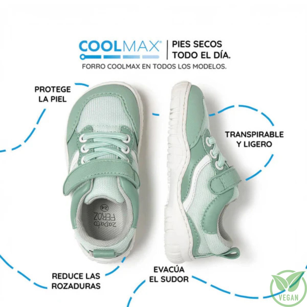 🌱 Microfibra natural y rejilla de nylon.  Recomendación feroz: Empeine bajo y medio.