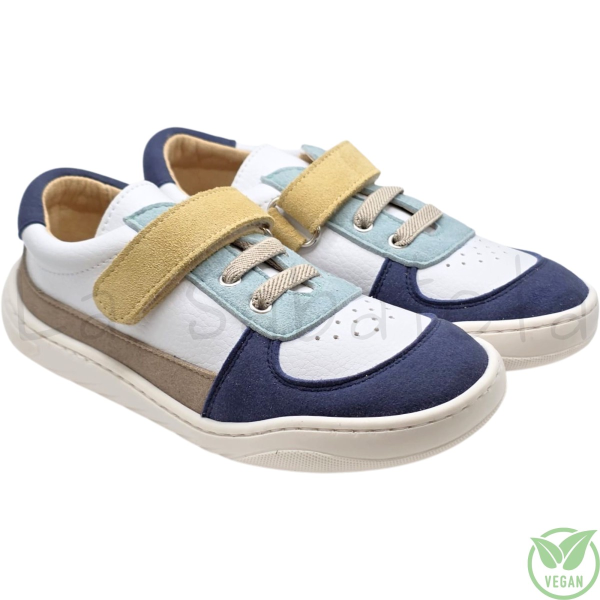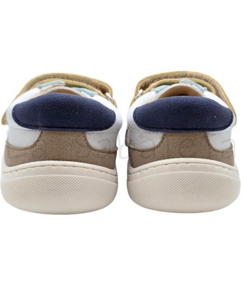 Zapatilla barefoot blanca con detalles en rosa y dorado compuesta de microfibra y piel exterior y microfibra interior y con ajuste de velcro y cordón elástico. Diseñadas para imitar la pisada como si fueras descalzo. Con puntera reforzada en serraje para que tu hijo o hija pueda jugar sin restricciones y ajuste de velcro y cordón elástico para favorecer la autonomía.