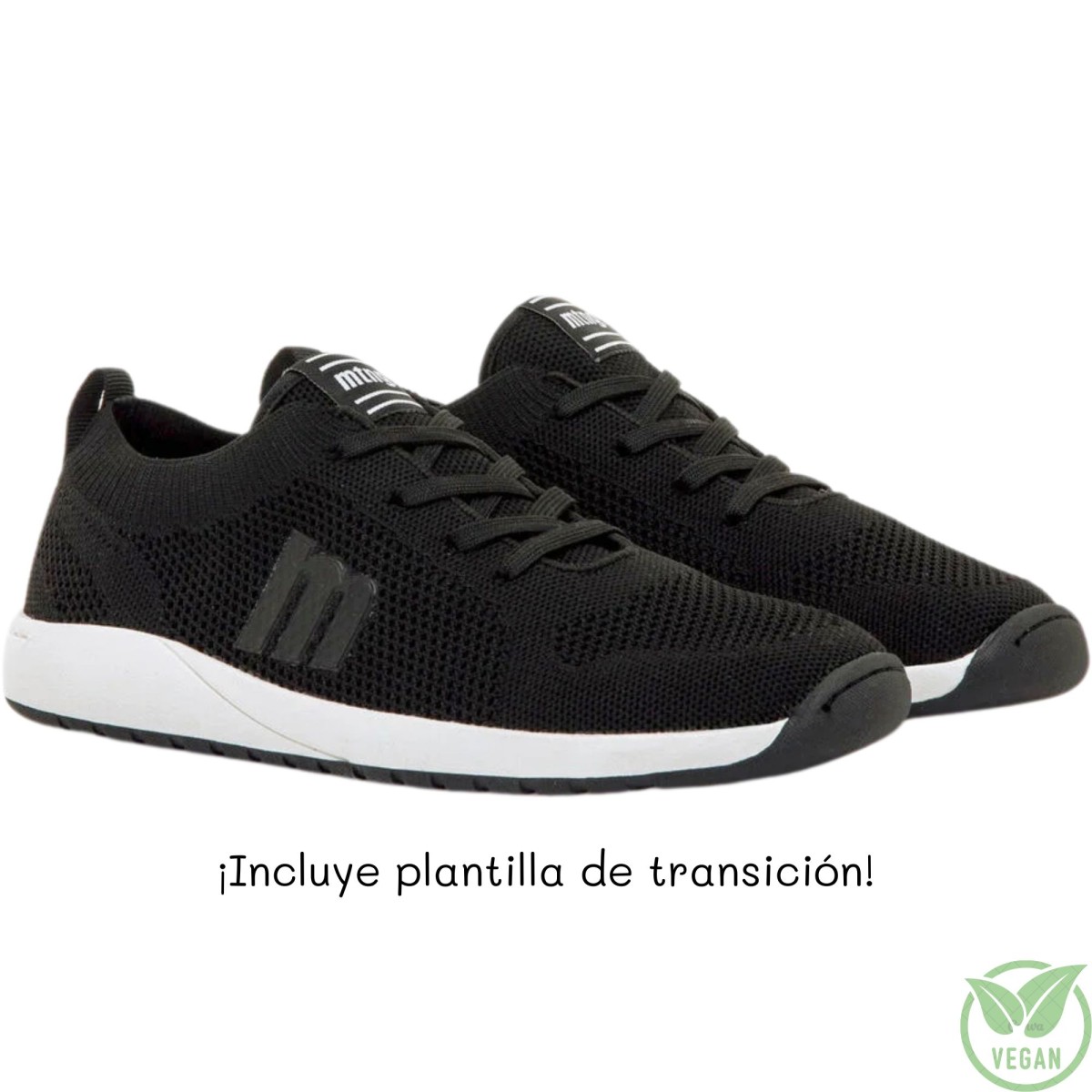 Zapatillas barefoot de color negro, modelo Free Apolo de estilo deportivo. Destaca por su upper en malla y su suela blanca en contraste. 100% barefoot, con puntera amplia que permite el libre movimiento de los dedos y una suela firme y plana, para no perderte ni un solo detalle del suelo que pisas.