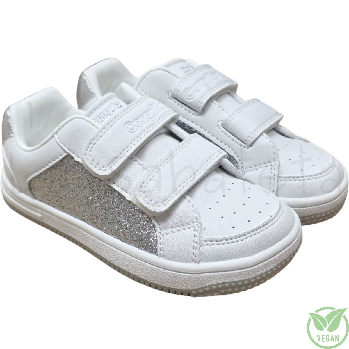Las zapatillas barefoot de Conguitos en color blanco con glitter dorado, comodidad y funcionalidad para el día a día infantil. Un modelo versátil, ligero y transpirable que respeta el desarrollo natural del pie sin renunciar a la estética. Fabricadas en microfibra e interior textil, ofrecen un equilibrio perfecto entre durabilidad y ventilación. Ideales para mantener el pie seco y cómodo incluso en jornadas largas.