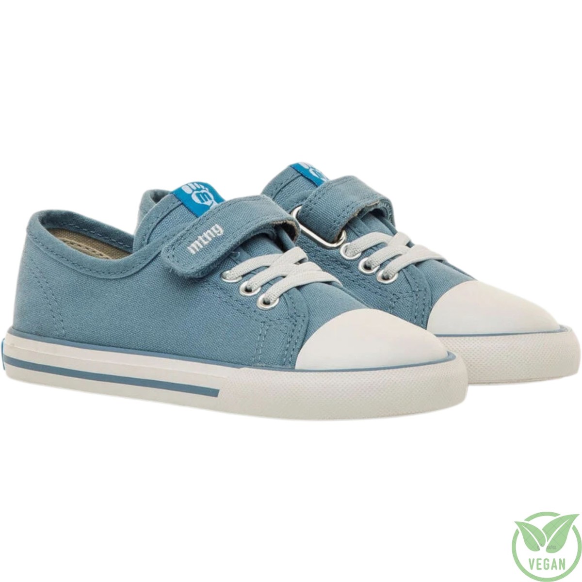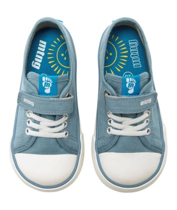 Zapatillas barefoot de color azul claro infantil, modelo Free de Mustang. Su diseño en lona lisa incorpora cordones elásticos y tira adhesiva para facilitar el calce. Diseñado y desarrollado especialmente en colaboración con el Dr. Juanjo López, traumatólogo deportivo e infantil, para respetar el desarrollo natural del pie del niño y la niña. Gracias a su puntera ancha permite el libre movimiento de los dedos dentro del zapato.