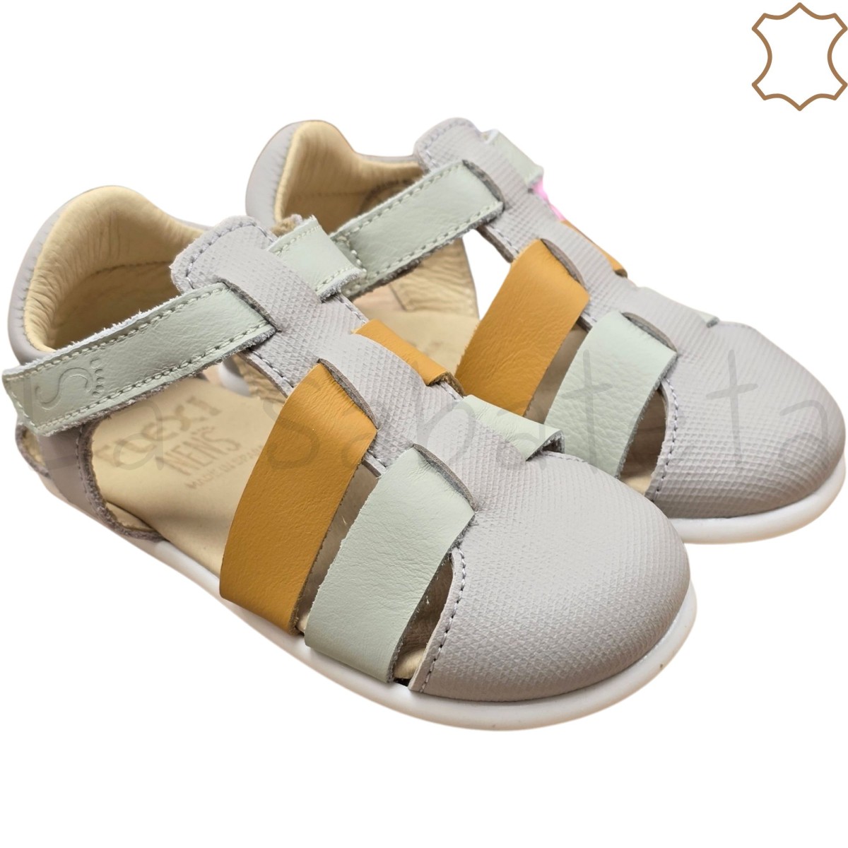 Estas sandalias barefoot infantiles están fabricadas en piel natural de alta calidad, suave y flexible, ideal para acompañar el movimiento natural del pie. Su diseño estampado aporta un toque divertido y veraniego, perfecto para los más pequeños.