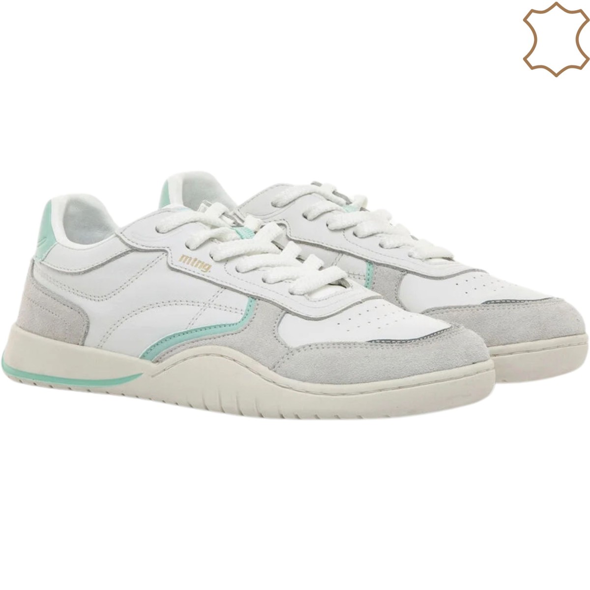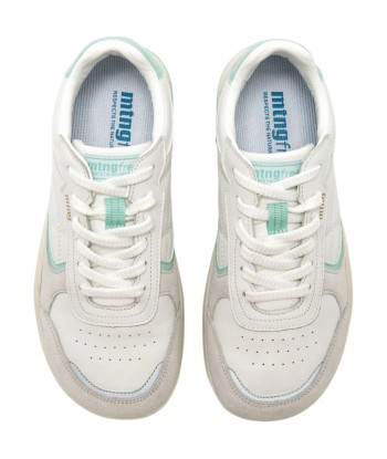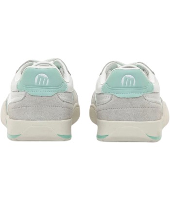 Zapatillas barefoot blancas de la marca Mustang, modelo Free Orbit de estilo urbano. Este diseño de perfil bajo combina paneles de piel con refuerzos tipo ante en tono gris claro y detalles en aguamarina que aportan un contraste fresco y actual. Con cierre de cordones, ofrece una estética deportiva y funcional pensada para quienes buscan comodidad sin renunciar al estilo.