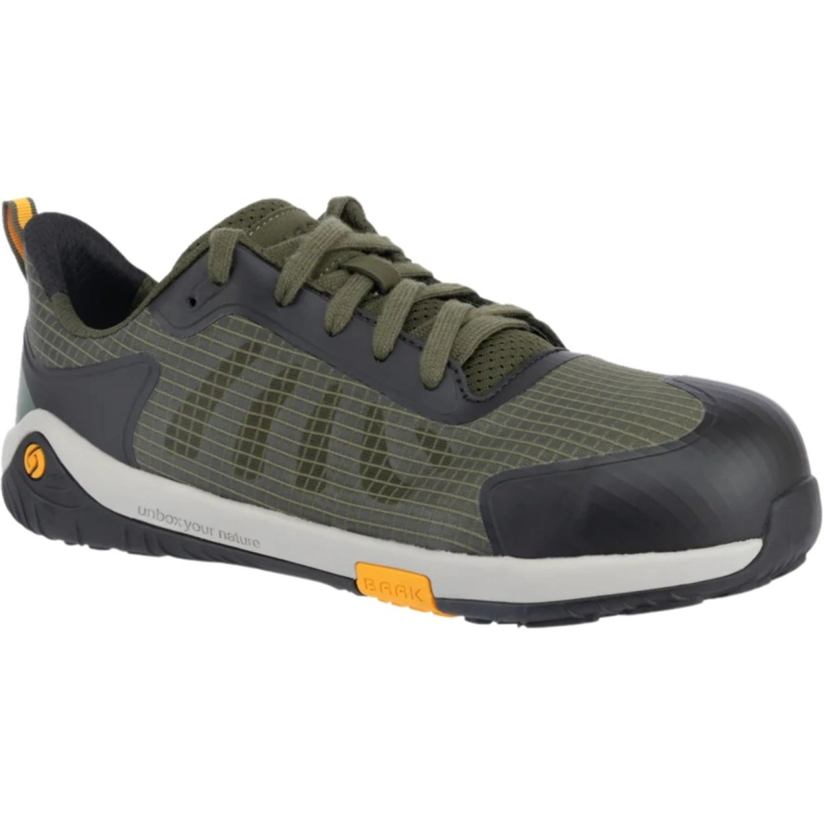 Calzado de seguridad Barefoot Pan; art. 226012; DIN EN ISO 20345:2024 S1PS FO HRO SR ESD; tejido resistente al agua 40 % reciclado con zonas de ventilación y aplicaciones de TPU; forro sándwich transpirable, 65 % reciclado con zonas de ventilación; plantilla Baak Barefoot Zero; sistema Baak®Go&Relax para una flexión cómoda del pie; suela de EVA/caucho; puntera Alu-flex; protección antipenetración Baak NeoShield; Tallas: 36-48 / 240-320 mm