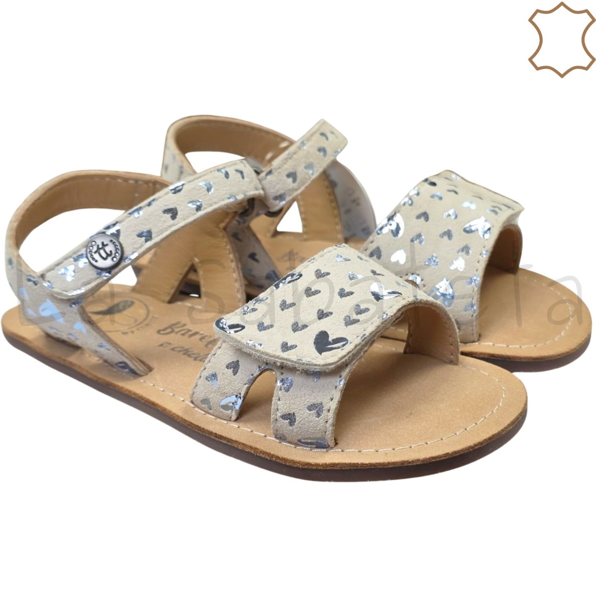 SANDALIA PIEL BEIG CORAZONES - CHETTO