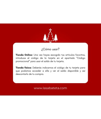 La tarjeta regalo tendrá un código de 8 dígitos. Deberán introducirse en el apartado "Código promocional" de la pasarela de pago. Podrá usarse el importe completo o ir usándose de forma parcial hasta agotarse.